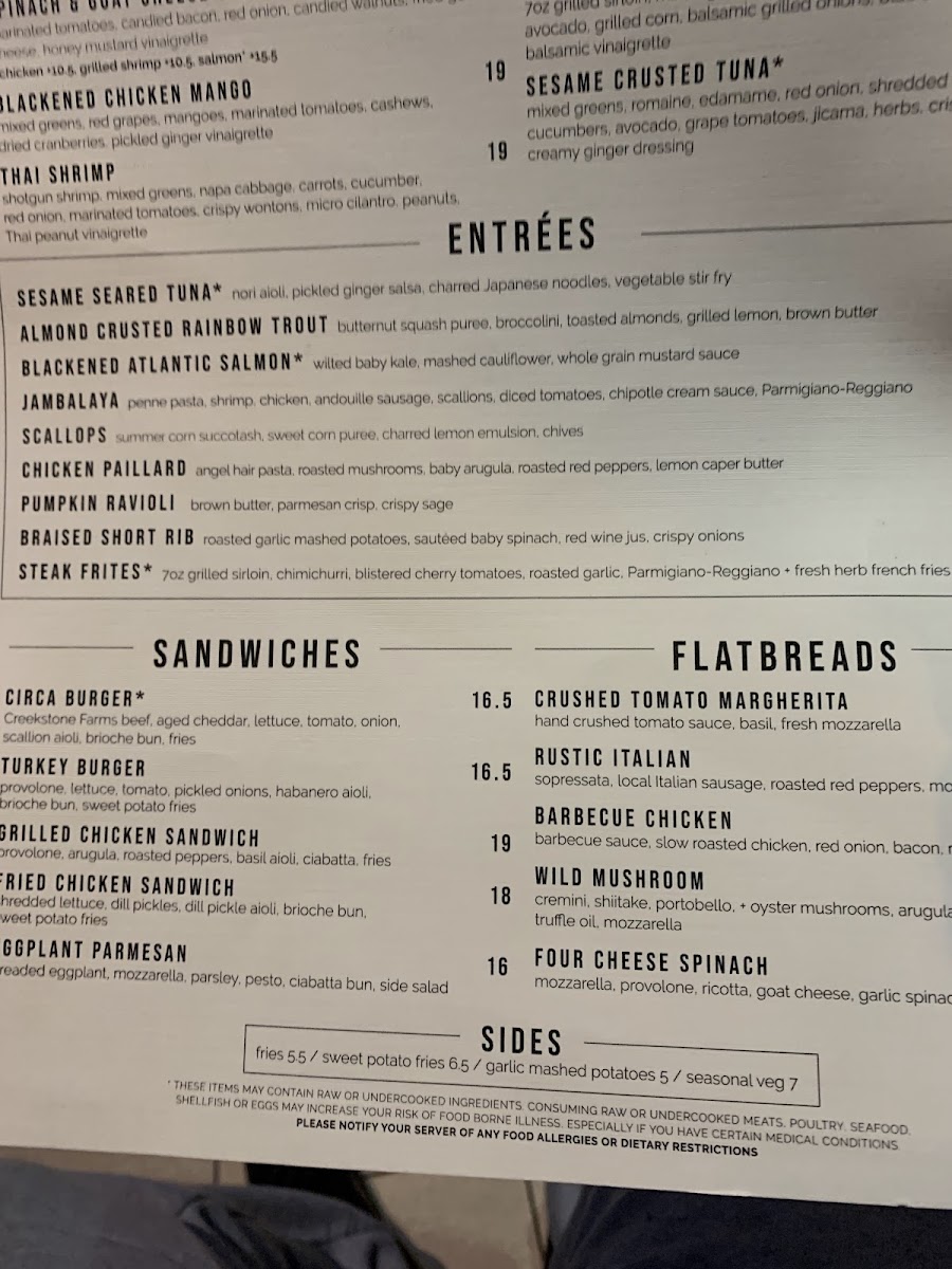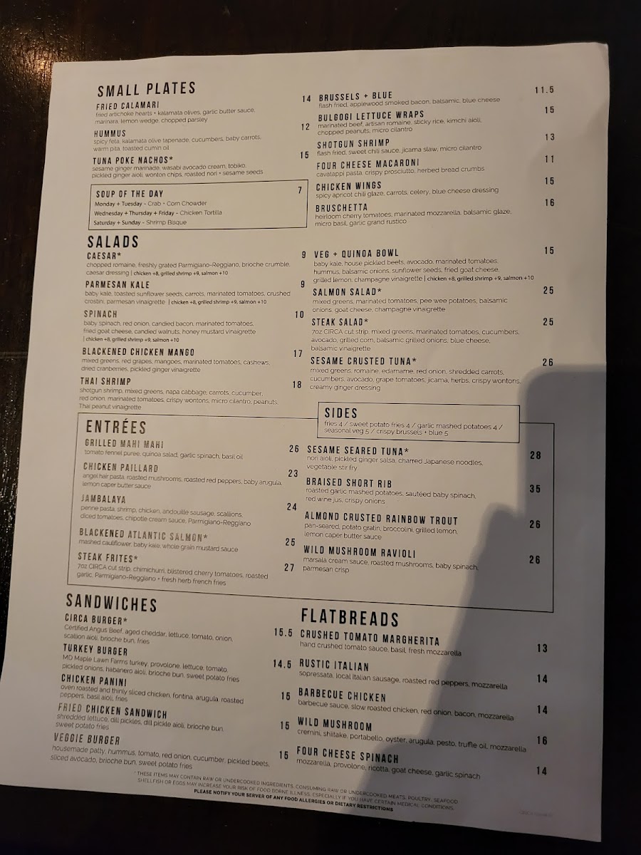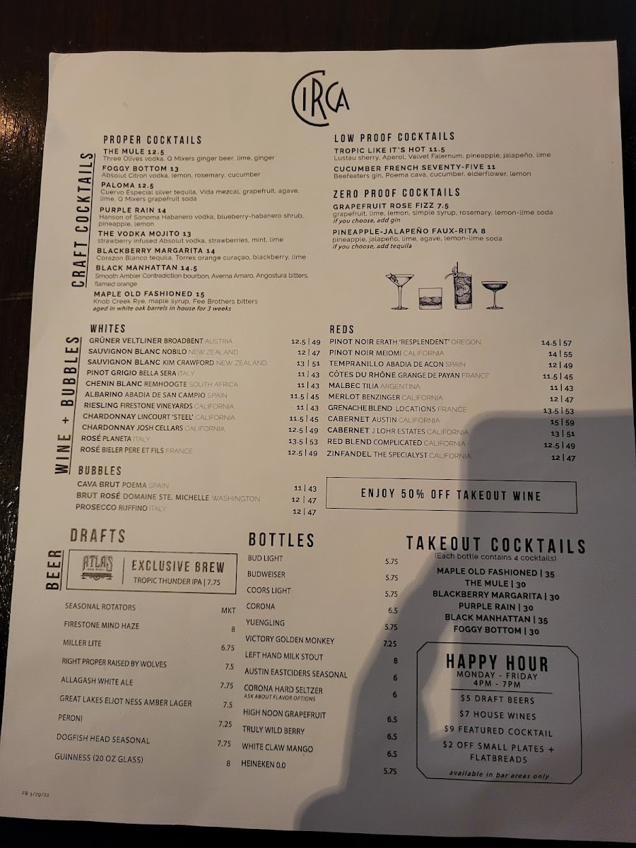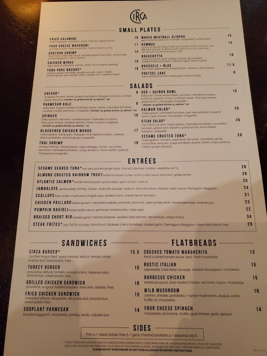 The moment you step inside, you are embraced by a delightful ambiance that strikes a perfect balance between sophistication and casual charm. With white tablecloths that hint at upscale dining and the added excitement of strategically placed screens airing games, CIRCA creates an inviting spot for both leisurely brunches and lively dinners.